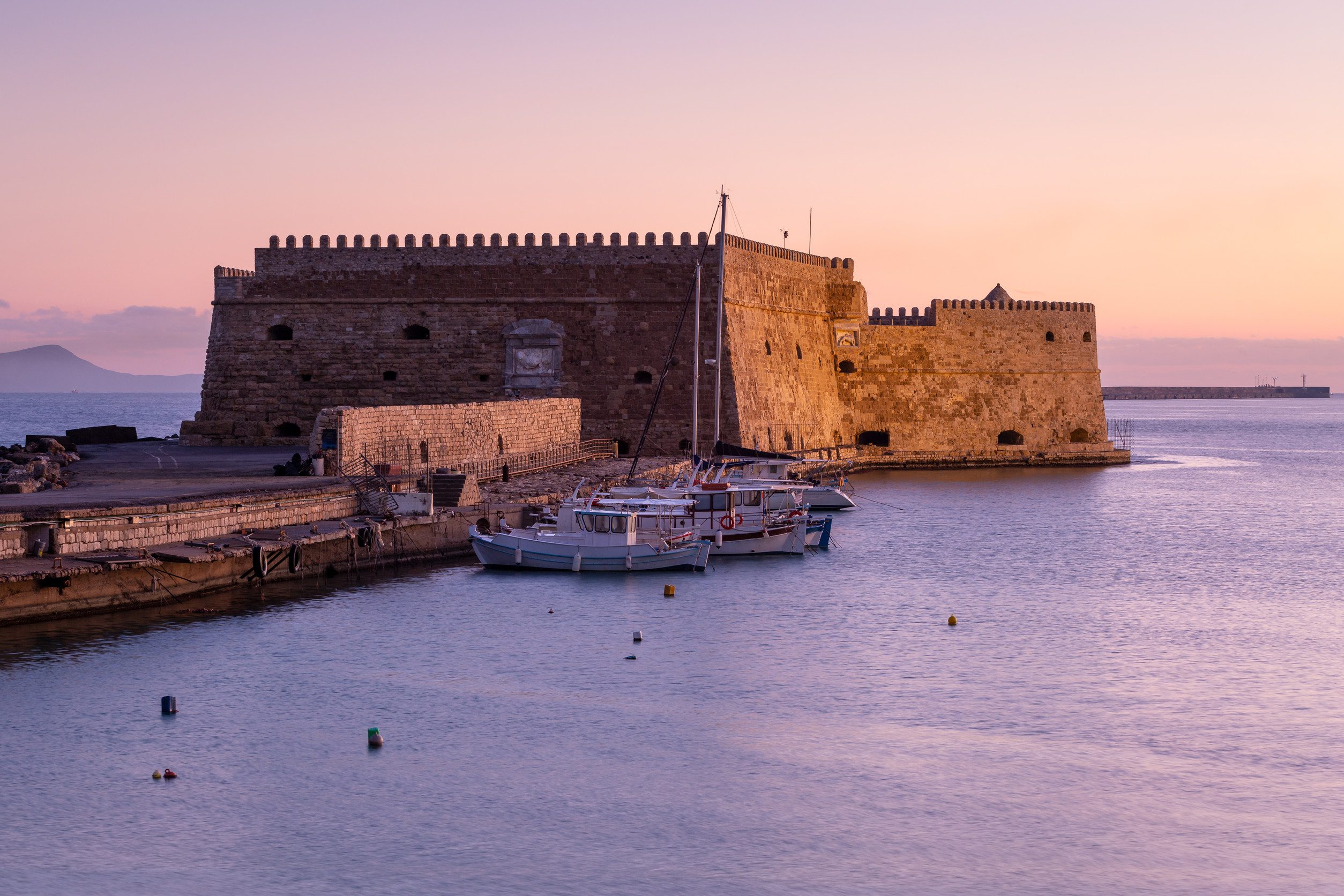 這座位於伊拉克利翁港口的威尼斯古堡,建於16世紀,曾作為防禦海上入侵的要塞。城堡坐落於海堤上,外觀雄偉,是港口的標誌性地標,與周圍的海灣風景相互輝映。