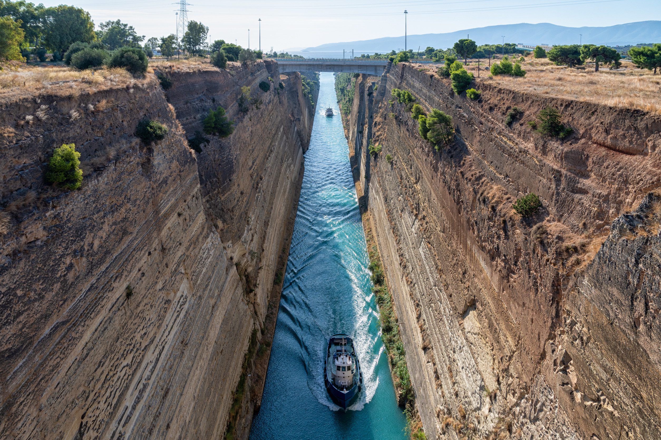 連接愛琴海與約尼亞海,全長約6.3公里的重要人工運河。運河兩岸峭壁陡峭、景色壯觀,不僅是縮短航程的工程奇蹟,也成為熱門的觀光與拍照地點,見證希臘古今的交通發展。