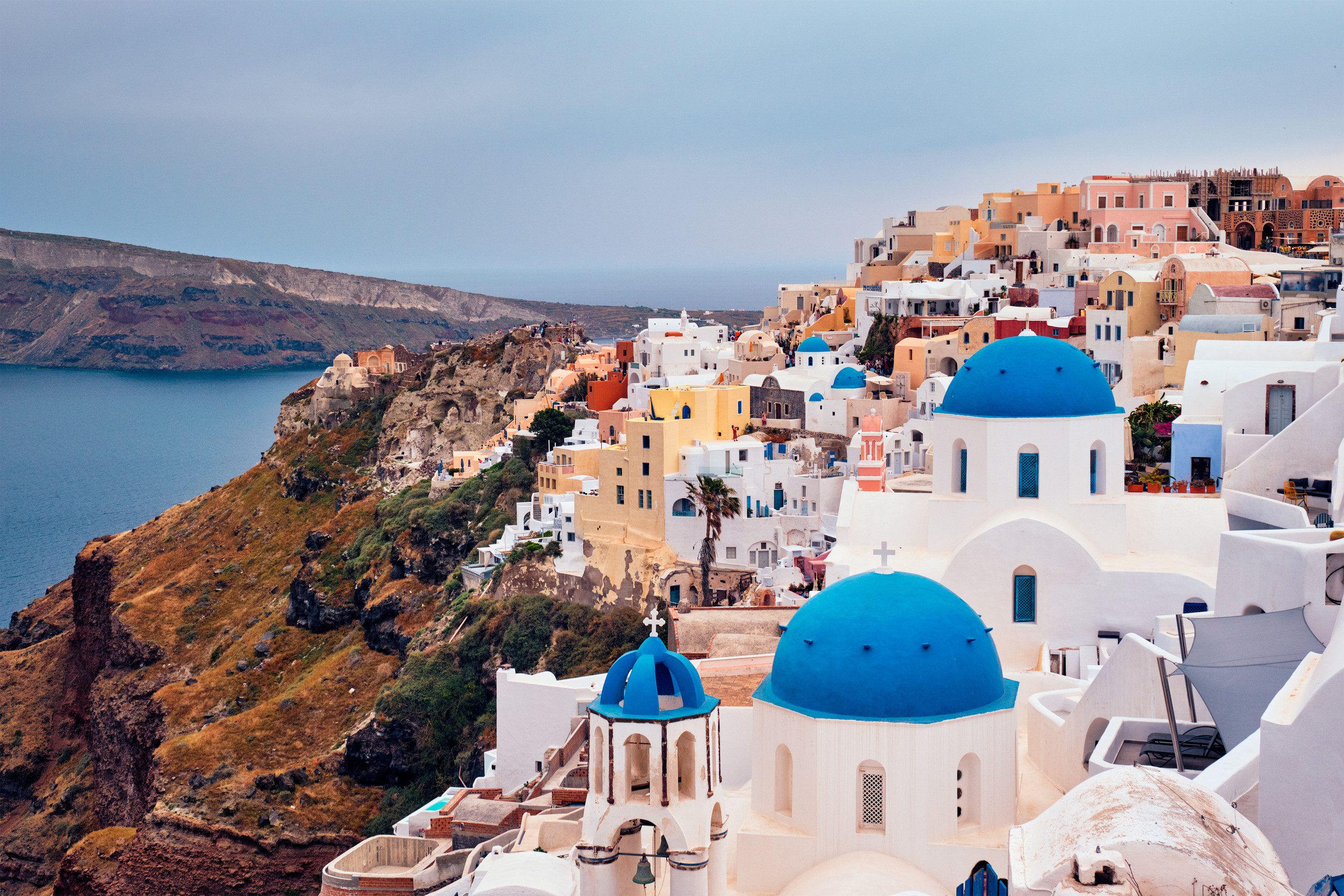 希臘最著名的愛琴海島嶼,以壯麗的火山地形、懸崖上的白色屋舍和藍頂教堂聞名。島上由古火山噴發形成獨特地貌,是觀賞壯麗日落和浪漫旅行的熱門勝地。