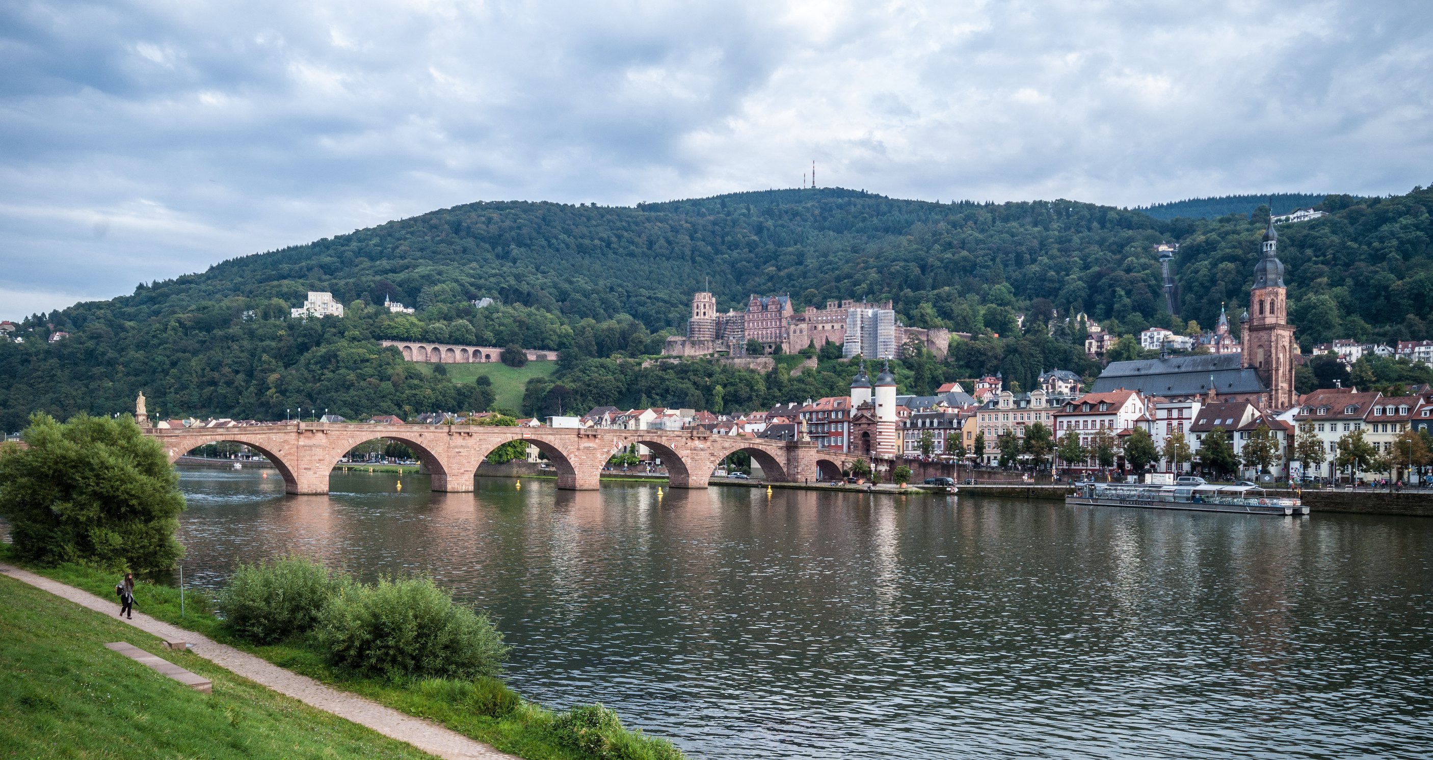建於 1788 年,以紅砂岩建成,橫跨內卡河連接老城與新城。橋上的「銅猴」雕像象徵謙遜與幸運,摸鏡子可祈求好運。漫步橋上能欣賞壯麗河景與古堡全貌。